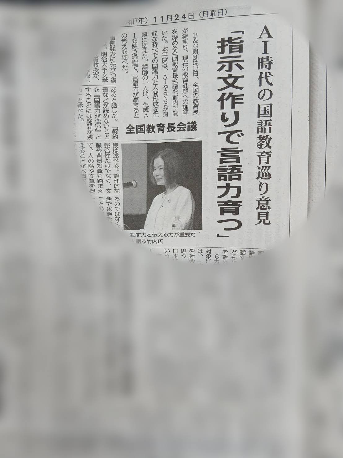 2「「読解力の本質と話す力の重要性 AI、SNS時代の国語を問う B&G全国教育長会議で専門家が講演」(教育新聞)